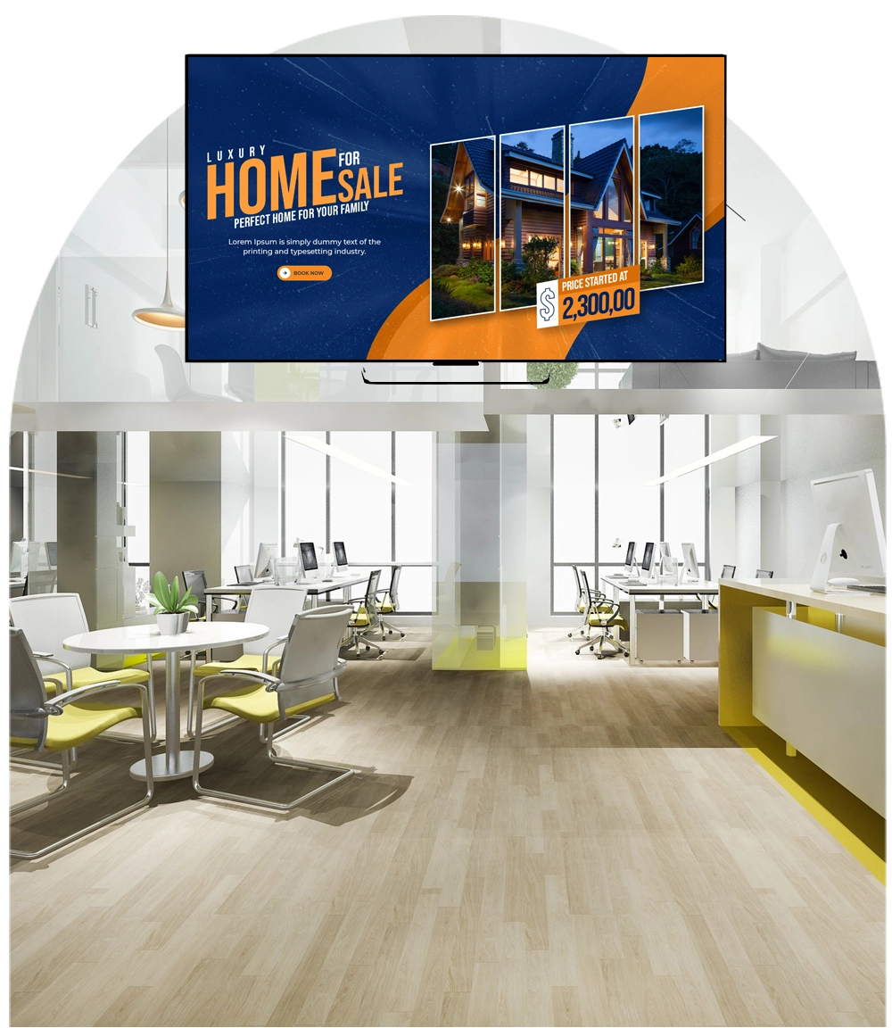 Digital signage brings a competitive edge to commercial real estate by adding a modern, professional touch to your properties. From lobbies to elevators and shared spaces, you can keep tenants and visitors engaged with relevant, real-time information.