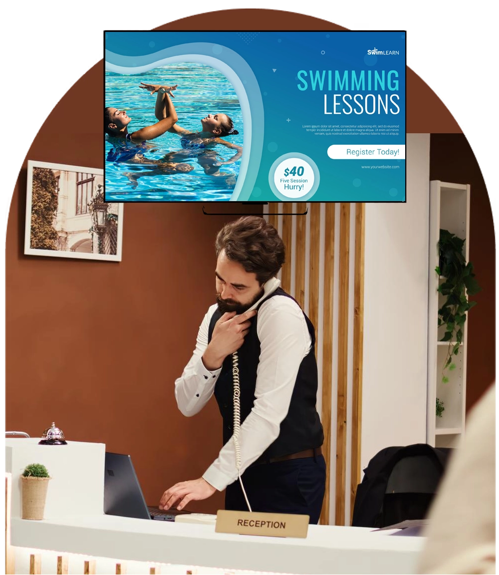 From dynamic lobby displays to in-room service menus, you can manage content centrally and tailor it for different zones and guest needs. With multilingual support and real-time updates, your communication remains seamless, engaging, and globally consistent.