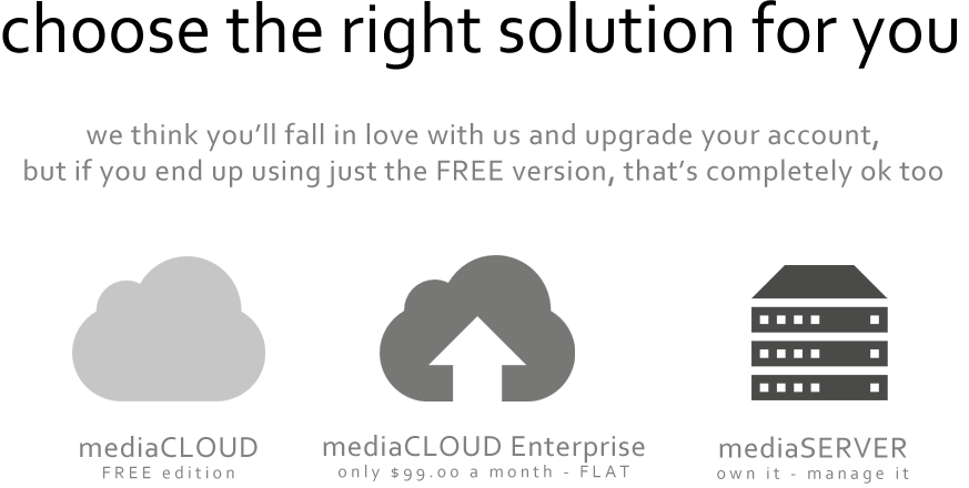 core features Get unlimited access to the SignageStudio and all the FREE licenses you need for the SignagePlayer so you can manage any number of screens for FREE. You get about 90% of the features set with the FREE mediaCLOUD.